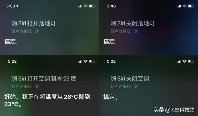 空调倒是可以直接设置温度,制冷制热模式,而且相对小爱音箱更方便的一个地方在于,你可以直接嗨Siri后接指令,而不必要等小爱回复后才可以直接指令。